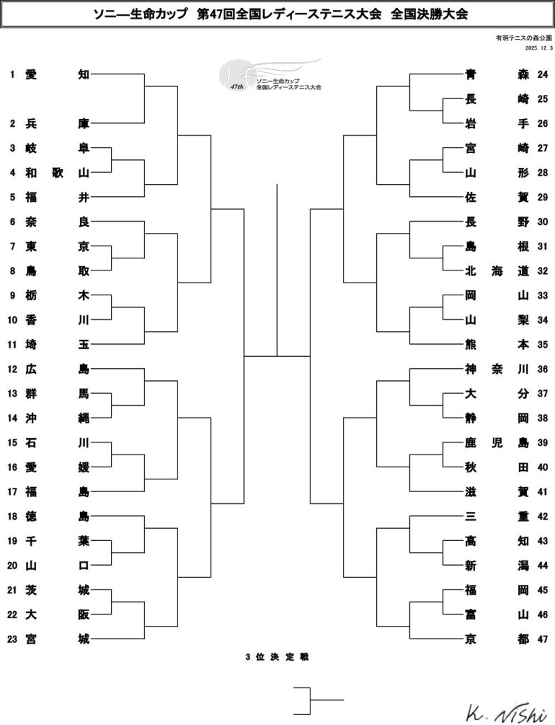 本日、ソニー生命カップ第47回全国レディーステニス大会全国決勝大会のドロー抽選(オンライン)が行なわれ、ドローが決定しました。