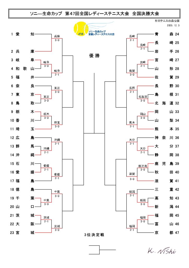 全国レディーステニス大会全国決勝大会 1日目結果を掲載しました