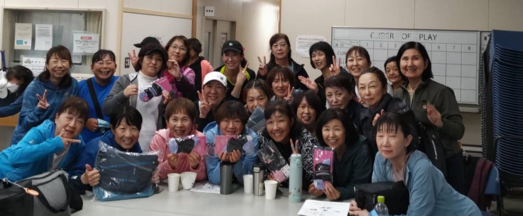 朝から雨の中試合が始まりましたが、2ラウンドまでで終了。結果は無しになりました。 その後、室内コートで親睦、雨があがって外でも親睦となりました。 状況がいろいろ変わる中、皆さん良く対応してくれて頑張りました。 他県の方々と交流できて、楽しく良い経験になりましたという声が多数ありました。 応援ありがとうございました。岩手県支部のスタッフの皆さん、お世話になりありがとうございました。 秋田県支部 監督 信田雅子 |
