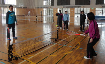 テニスへの導入方法、指導方法を具体的に実践をまじえて学びました。